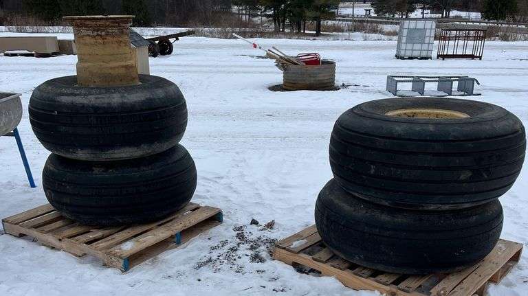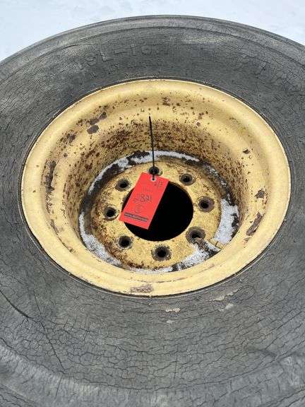 (3) Eight bolt tires and wheels, one odd ball tire and wheel, same size, one eight bolt wheel to make matching set of (4), 19.5 x 16.1