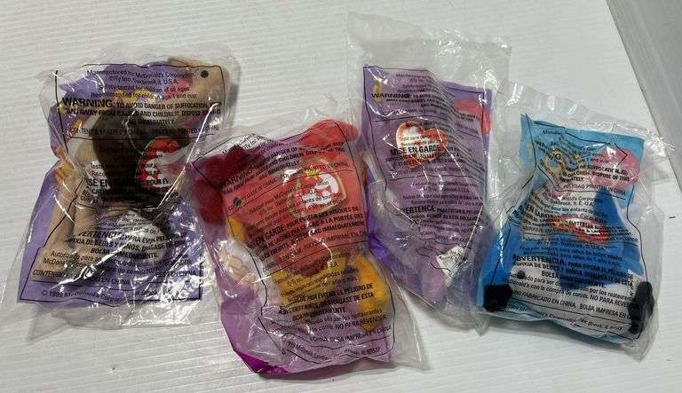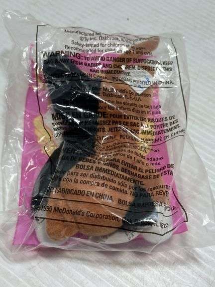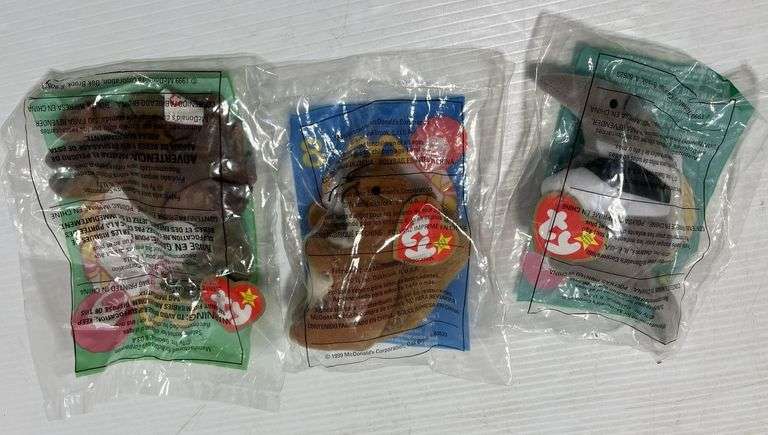 (22) Vintage 1999 TY Beanie Babies Collection, multiples of each, McDonald's Happy Meal Collection, includes: 3- Leopard, 3- Anteater, 2- Blue Jay, 2- Iguana, 2- Rooster, 2- Squirrels, 2-Crab, 2- Ostrich, 2- Husky, and 2- Cats, new in sealed packages