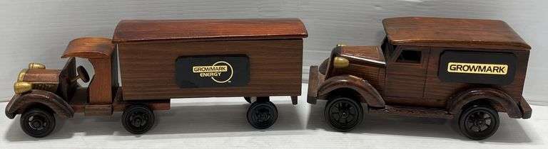 Pair of wooden trucks, Advertising Growmark energy, up to 12"L, very neat