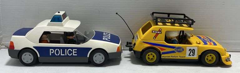 Vintage 1976 Playmobil Hella Valvoline Rally Race, Car Model No. 3524; Vintage 1997 PlayMobil police car, Model No. 3904, both- 8"L, in great condition