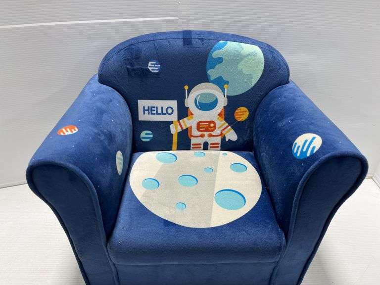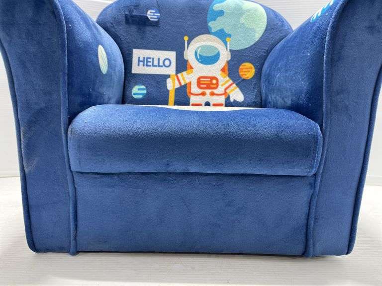 Spaceman Children's sofa armrest chair with space pattern, sturdy, wooden construction, ages- 1- 5 years old, 15"W x 20"L x 17"H, with pillow, good