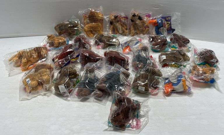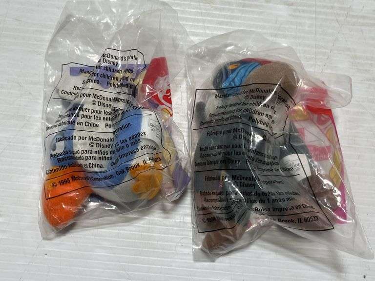 (26) Disney's Lion King 2, Simba's Pride, 1998 McDonald's Happy Meal plush soft toys multiples, new/sealed in packages, approx. 4"H; (2) Complete sets plus extras, includes: 4- Kourb, 3- Zazu; 2- Timon; 2- Kiara; 4- Pumba; 5- Zira; 3- Rafiki; and 3- Simba