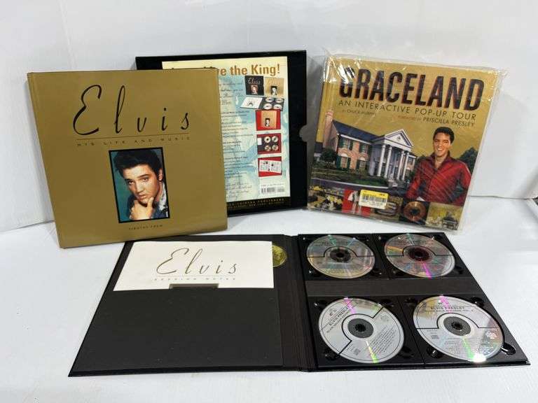 Elvis his Life and Music, and Graceland Interactive pop-up tour book, 12" x 12", comes with 4-CD's, and Book, NOS