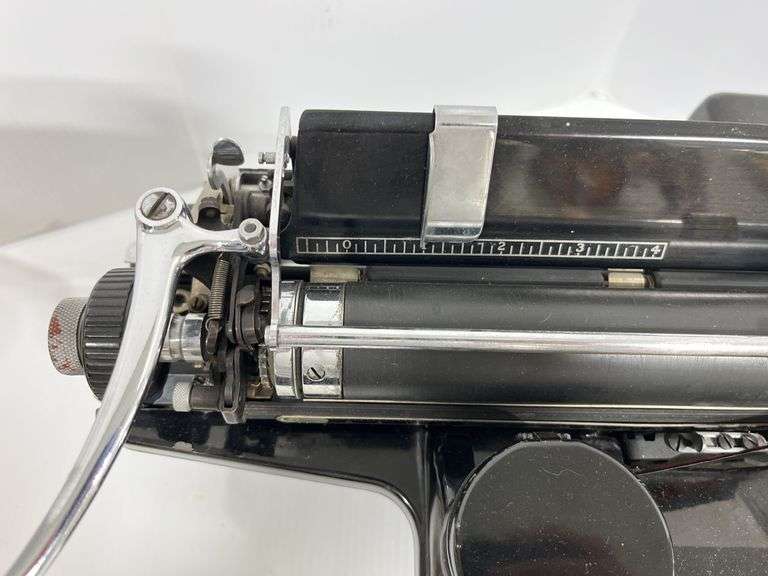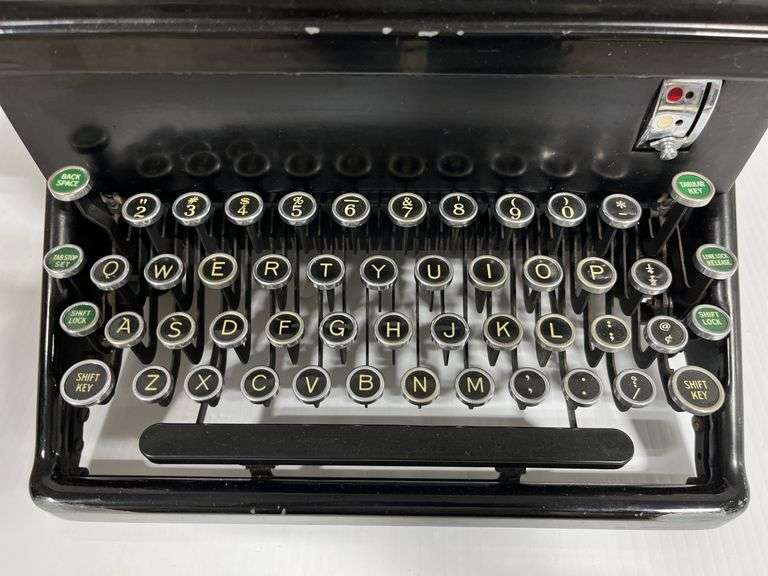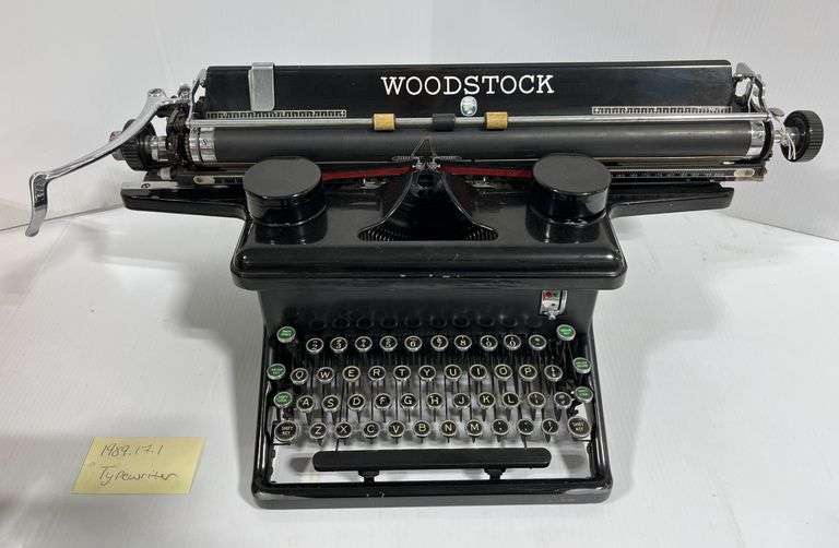 "Woodstock" Typewriter with 18" carriage, Serial No. 8K527602E, this one appears it may be from the early 1930's based on the green ID tape, "5-31", on the left side. Acquired from the Sloan Museum of Flint, weighs 39 lbs., near excellent condition, some lower front paint loss from storage, functions, no stuck keys