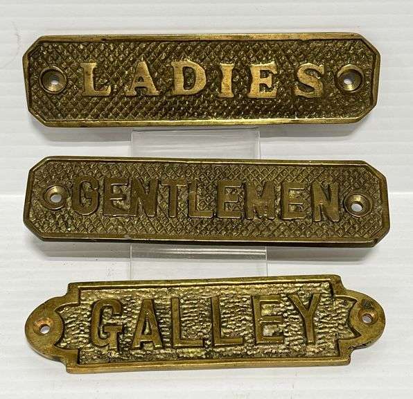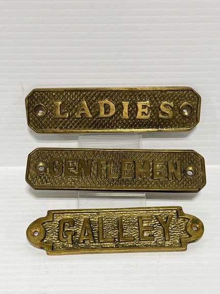 (3) Heavy brass door plaques that say, "Ladies", "Gentlemen", and "Gallery", up to 4 3/4" x 1 1/4", nice