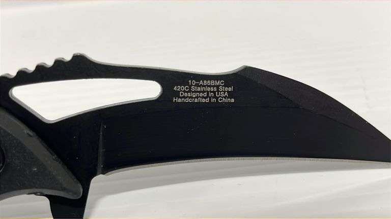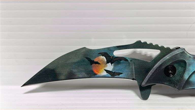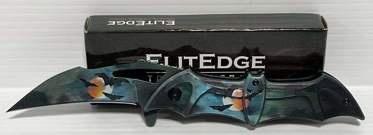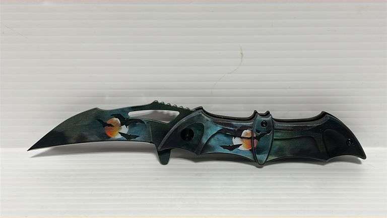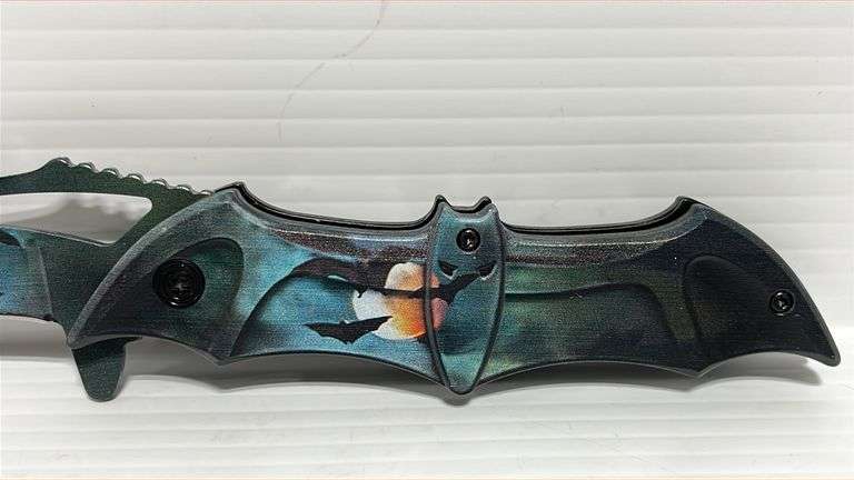 Midnight Dark Bat Spring, assisted pocket folding knife, 8 1/4" overall length, with 3.75" 3MM thick stainless steel blade, 5" black bat shaped ABS handle, with pocket clip, new