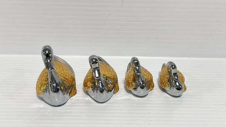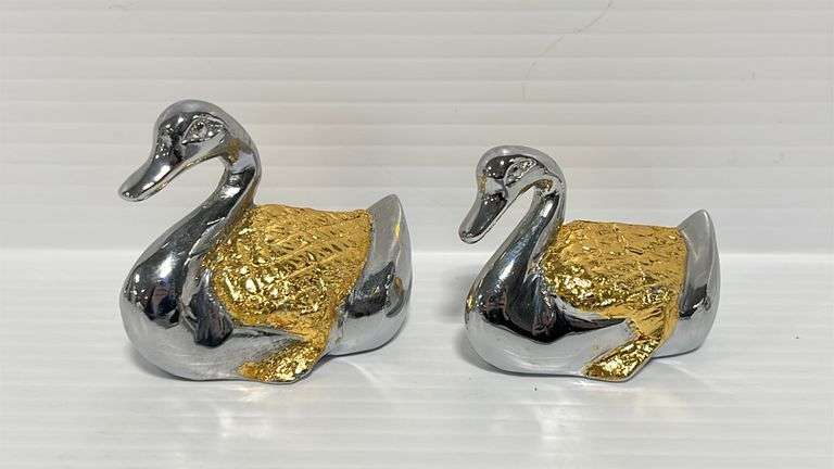 (4) 1970's Gold and silver tone solid metal ducks, up to 2 1/2", very good