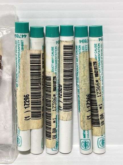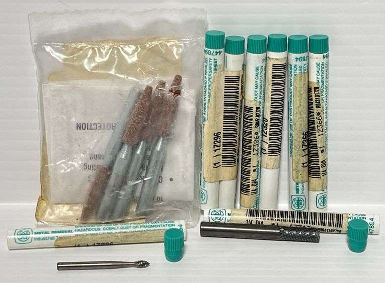 Grinding tools, include: (4) Norton stone grinders, 1/4" Collect, (3) Metal removal ind. 1/8", (5) Metal removal ind. 1/4", all new