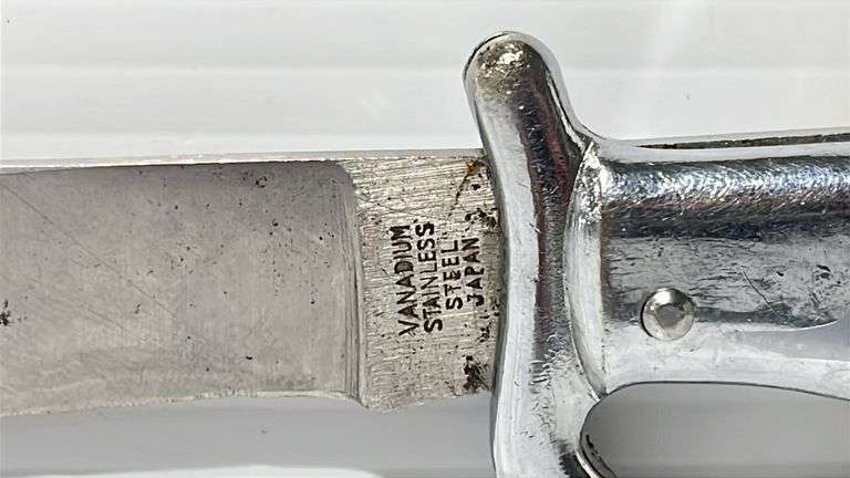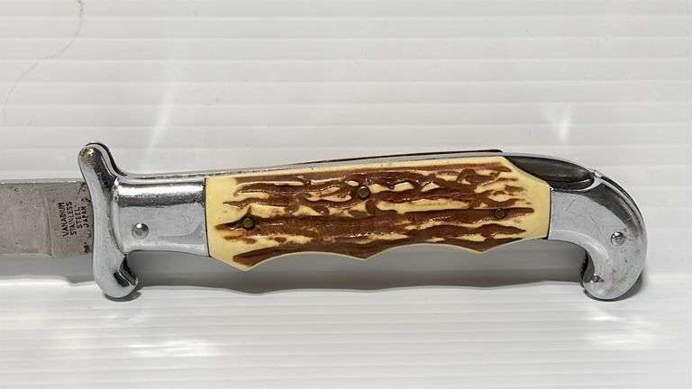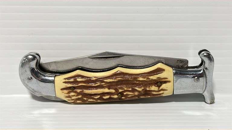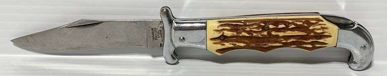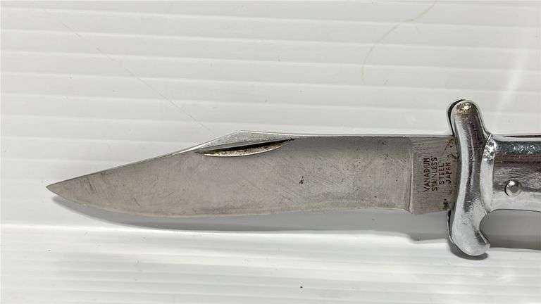 Carved bone pocket knife by Vanadium stainless steel, made in Japan, closed- 6"