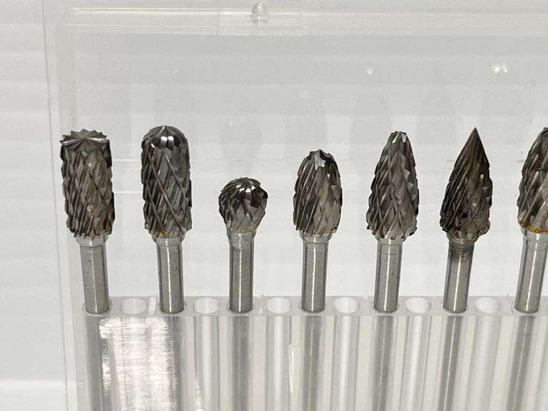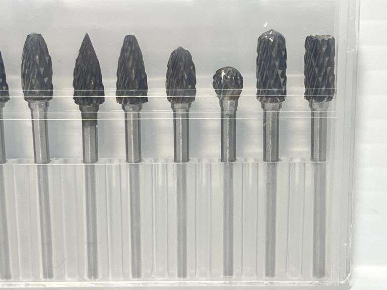 (10) Piece Carbide burr set, 1/8" Shank double cut tungsten for metal, wood, engraving, polishing, new