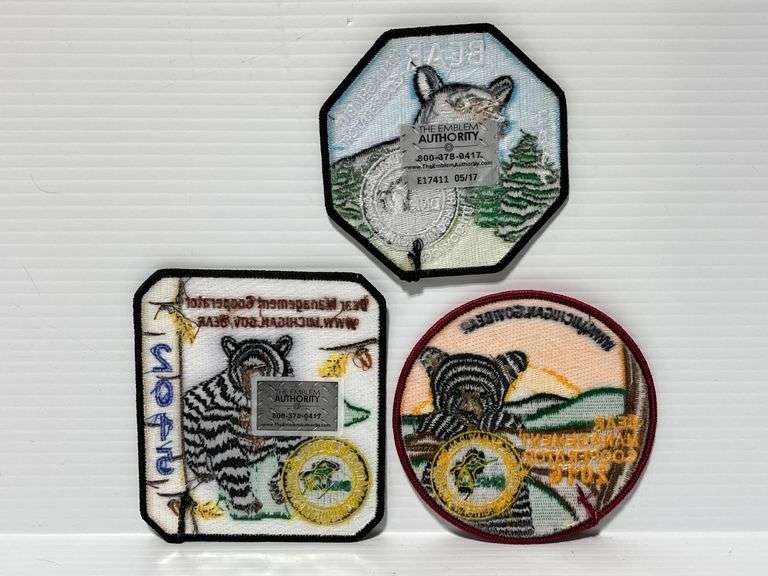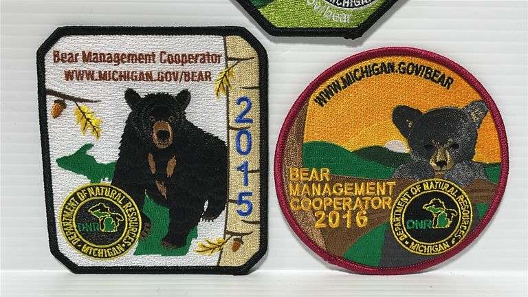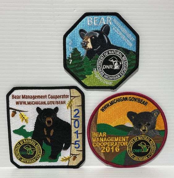 (3) Michigan Bear Management Patches, includes: 2015, 2016, and 2017, up to 4 1/2"L