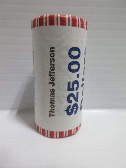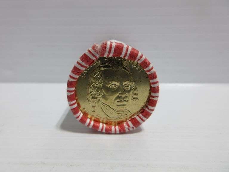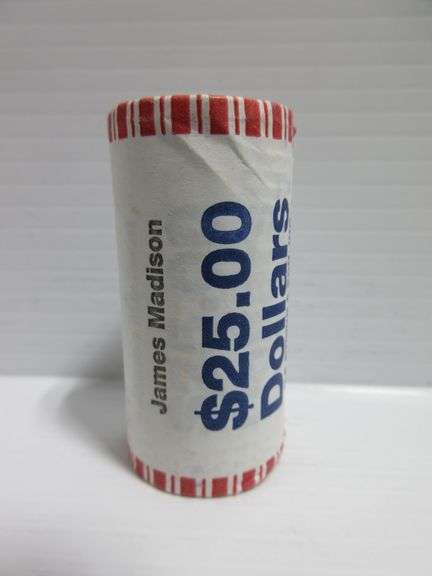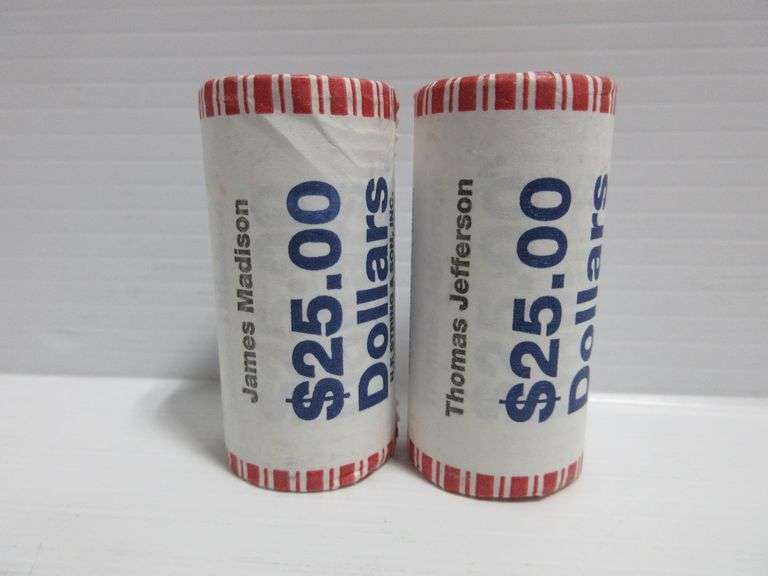 (2) $25 Rolls of dollar coins, includes: 1- James Madison, and 1- Thomas Jefferson, UNC