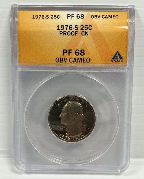 1976-S Washington quarter, graded PF68 Obv. Cameo by ANACS
