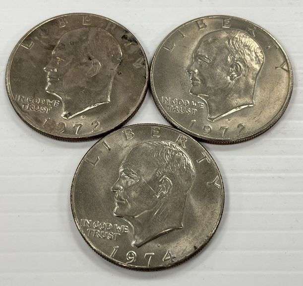 (3) Eisenhower dollars, includes: Two- 1972-D, and One- 1974-D, extra fine shape