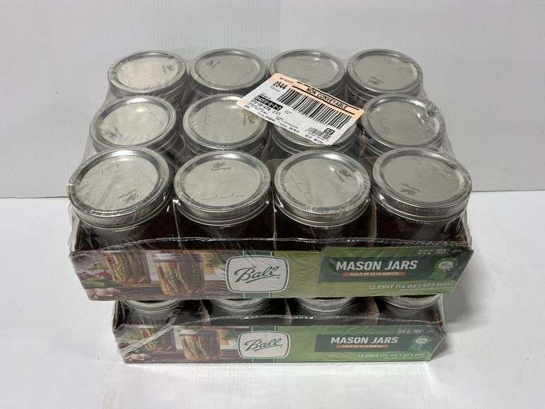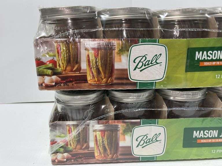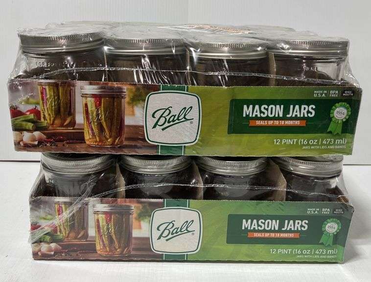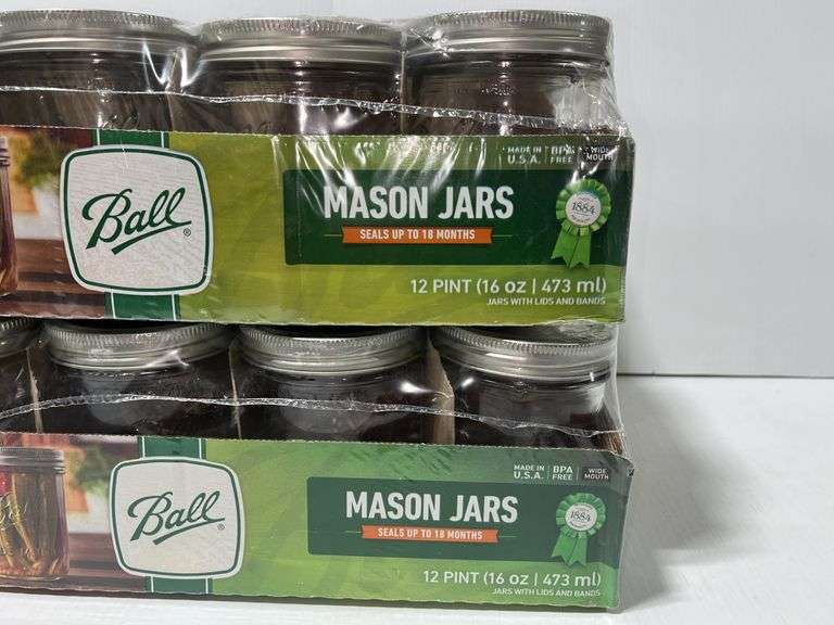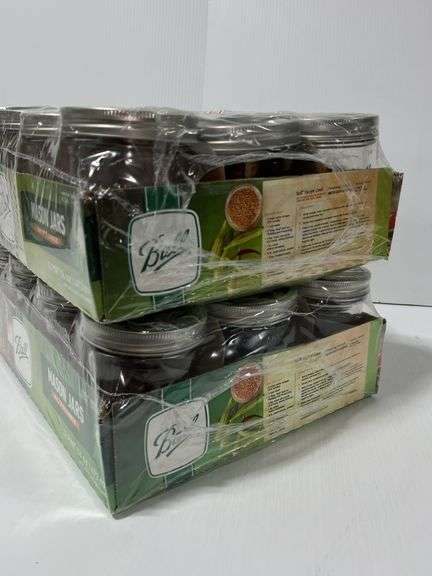 (2) Boxes of Ball Mason jars with lids, 12-pints, 16 oz., wide mouth, new