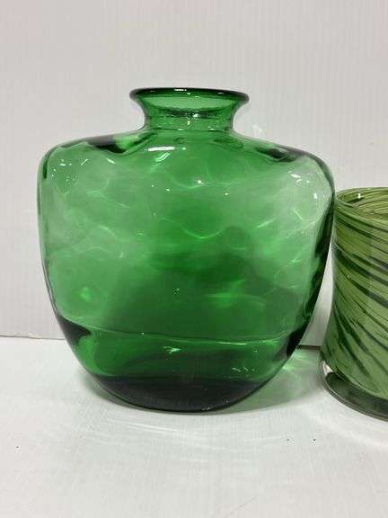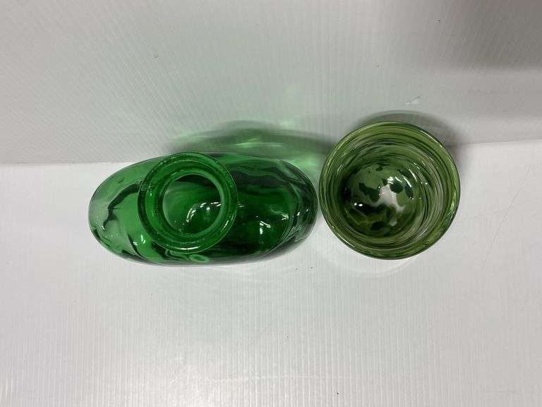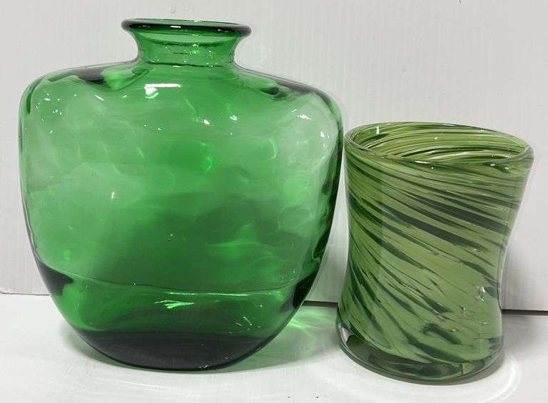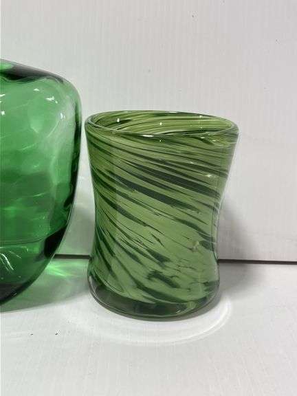 (2) Older pieces of art glass, one has paper label, made in Italy, 3 1/2"W x 4 1/2"H, and 6"W x 6 1/2"H, good