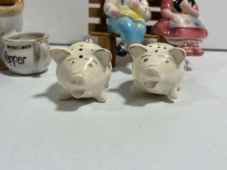 (8) Sets of salt and pepper shakers, 1940s, 50s, and 60s, up to 5"H, very collectible, no chips or cracks