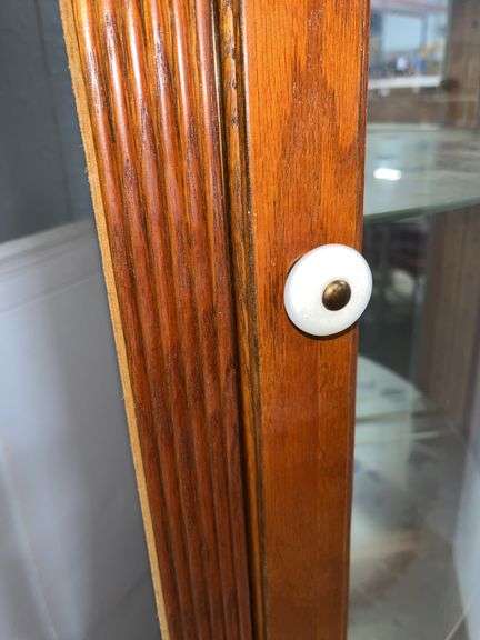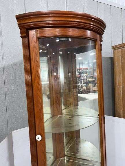 Pulaski Furniture lighted corner curio cabinet, made in USA, 24"W x 17"D x 77"H, nice