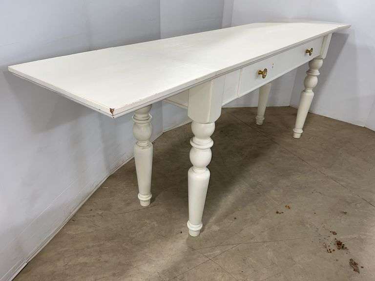 Retail console table with drawer, can be extended, extended- 18"W x 84 1/2"L x 30"H, regular- 18"W x 55 1/2"L x 30"H