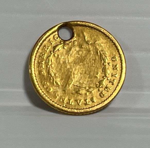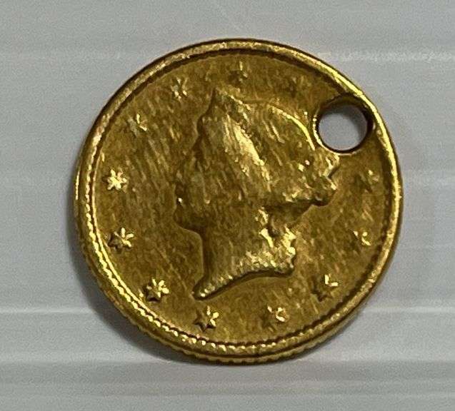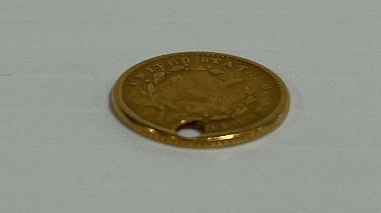 1.5g US $1 Gold Coin, has a 1/2"Dia hole, unknown year