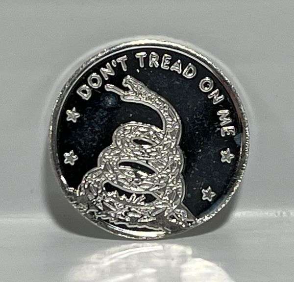 1g of 99.9% Fine silver round, "Don't Tread on Me", GEM BU