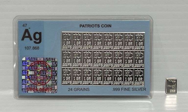 1g of 99.9% Fine silver bullion bar, Valcambi Suisse; 24-Grains of .999 fine silver, breakable into individual 1-grain bars, sealed, GEM BU