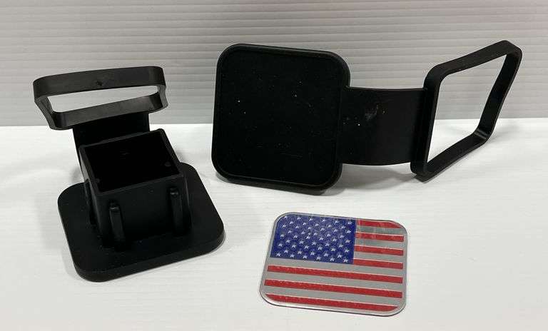American flag trailer hitch cover, durable 2" metal receiver tube protector, rubber plug cap, 2" hitches, one piece or a blank one, never used new
