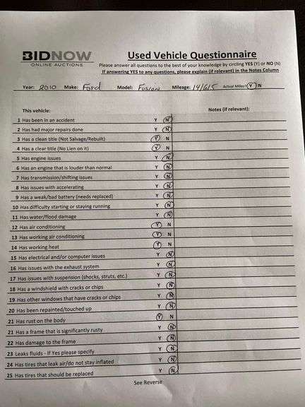 2010 Ford Fusion (141,615 Actual Miles), working heat and AC, rust on the body, some stains to the interior, tire sensor light is on, runs OK/fair, clean and clear title, NOTE: See Questionnaire Pictures (Filled Out by Seller) for More Information