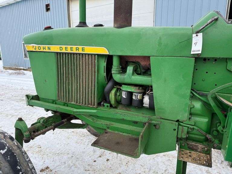 1968 John Deere 3020 Tractor with JD 148 Loader, Ser. No. 118431R, 3-pt., PTO, 18.4-34 Rears. Loader and bracket are now mounted to the tractor. Loader has adapter plate for skid loader attachment. Switched to 12-volt. New PTO Clutch installed 2-weeks ago at Tri-County Equipment. NOTE: Quick Hitch visible in pictures is Not Included. Top Link and PTO Cover is Included. 8' Bucket Included along with an Adapter Plate to weld on to use with Loader. NOTE: The pictures of the tachometer may or may not represent the actual machine hours. Please plan to inspect the items in person or call the owner with questions.