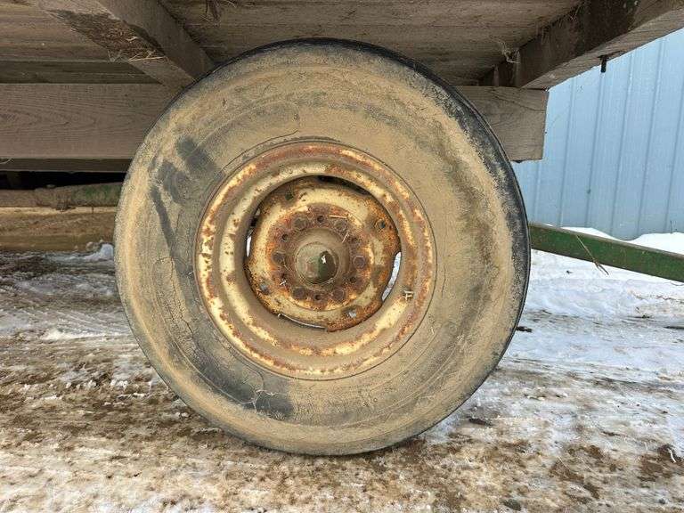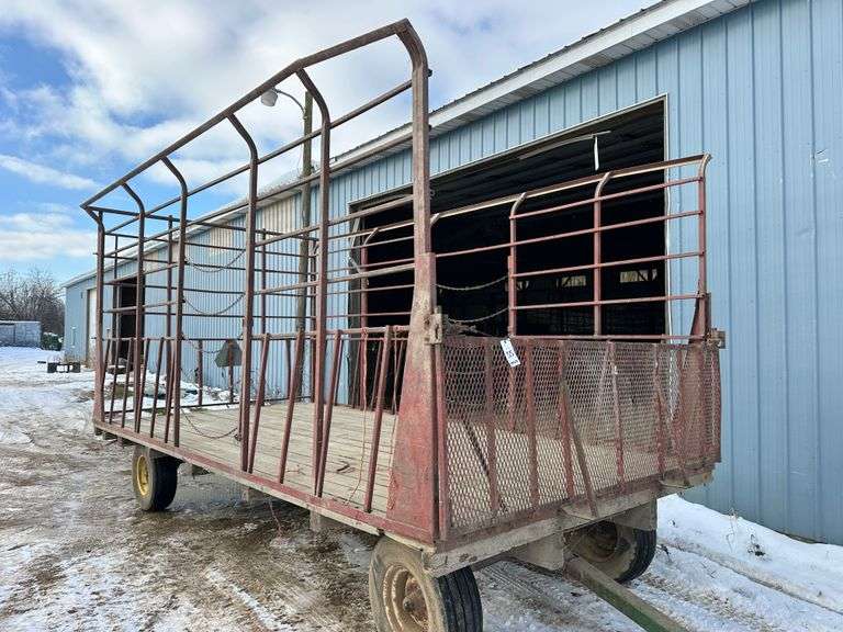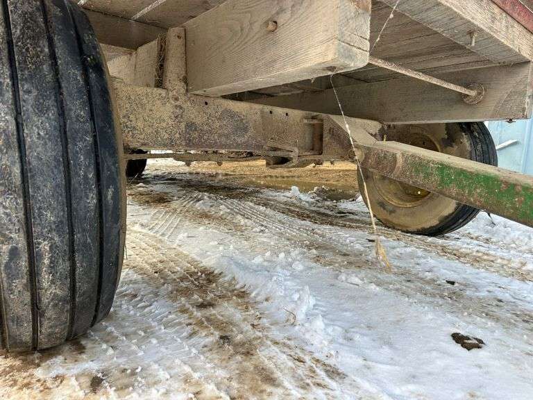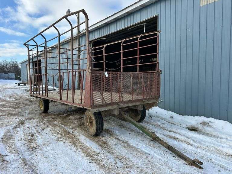 H&S 9' x 18' Bale Wagon, Extendable Tongue, Deck Appears Solid, Tires are Up. NOTE: Contents visible is pictures Not Included.