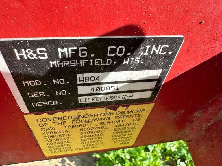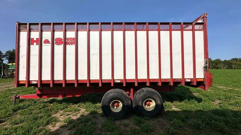 H&S Wide Body Forage Box, Tandem Axle, Mod. No. WB04, Ser. No. 400051, Wide Body Chassis 22-24, 21.5L-16.1 Tires (one tire down), Delamination on Front
