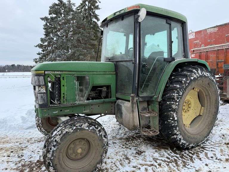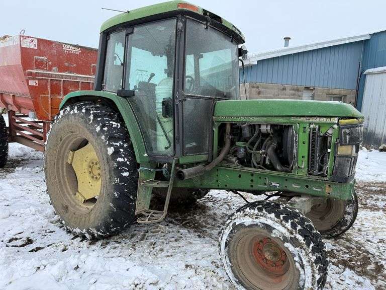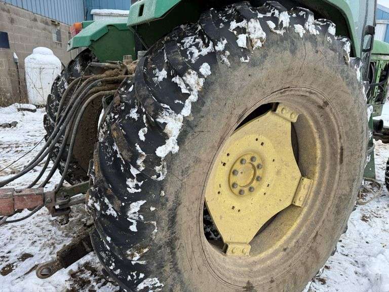 John Deere 6300 Tractor, Ser. No. 197254, 3-pt., PTO, Drawbar, (3)-Hydraulic Remotes, 10.00-16 Fronts, 18.4-38 Rears. Good running tractor - was used every day. Engine was rebuilt at 7,500 hours (now has 26,000 total hours. Right side engine cover will come with it. The front radiator side covers are missing. Original front tire and rim comes with it.