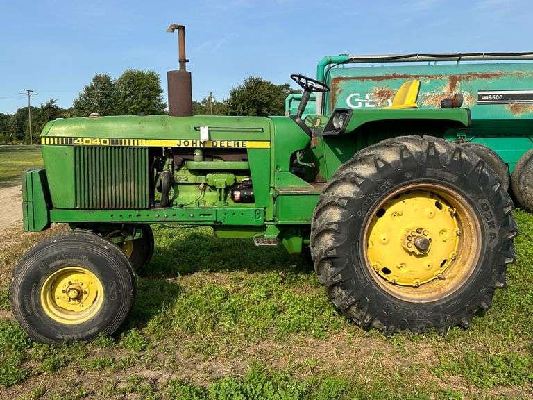 1978 John Deere 4040 w.f. Tractor, Ser. No. 2837R, (9,681 Hrs.), 3-pt., PTO, (2)-Hydraulic Remotes, 10.00-16 Fronts, 18.4-34 Rears, Front Weights. NOTE: The pictures of the tachometer may or may not represent the actual machine hours. Please plan to inspect the items in person or call the owner with questions.