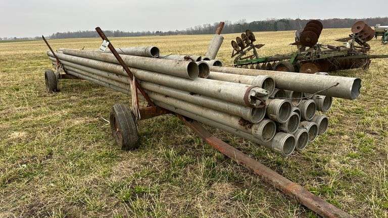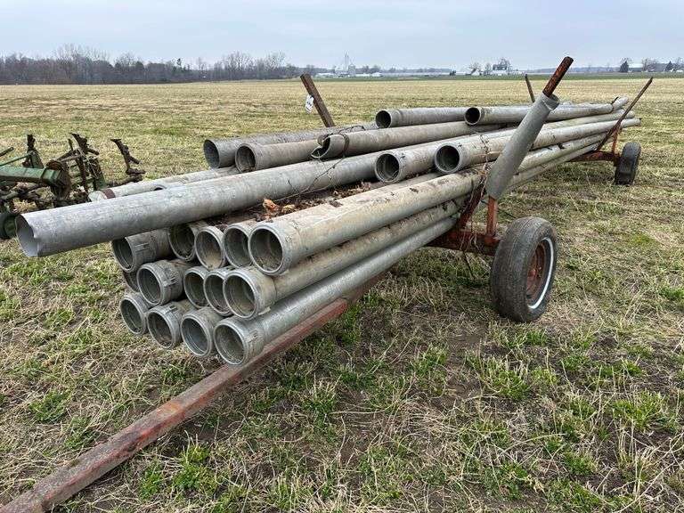Group of 6" Irrigation Pipe 35' long, with Transport Cart, Tires Not Holding Air