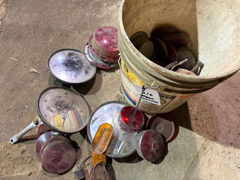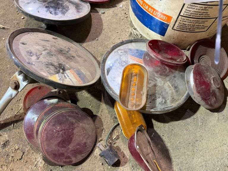 Bucket of Old Auto Mirros & Lights