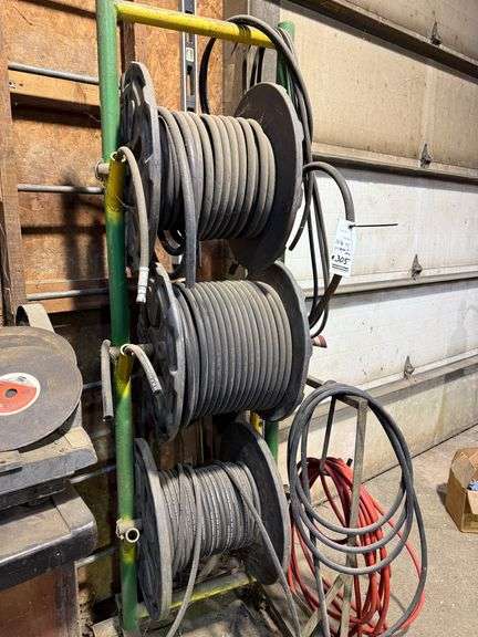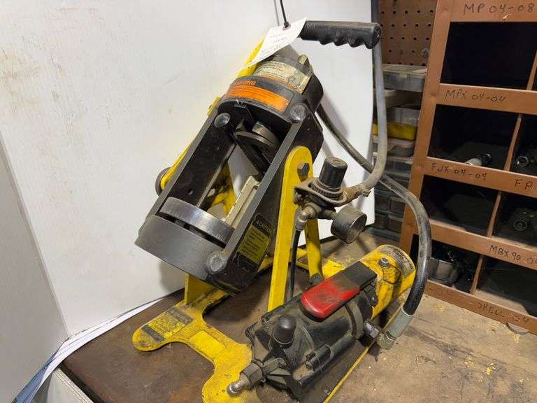 Weatherhead T-462-2 Hydraulic Hose Crimper, 10,000 PSI/700 Bar Max, with (3) Spools of Hose, Rack and Cut-off Saw