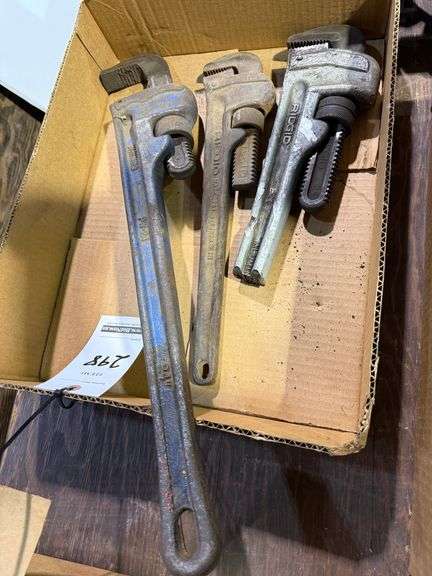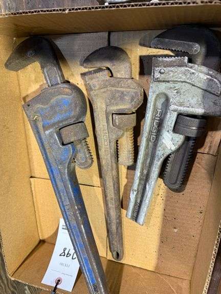 (3) Wrenches: 18" Rigid Wrench (good), (1) (broken handle), 24" Missing Jaw