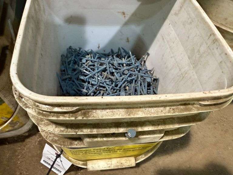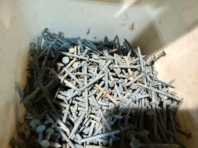 Half of a 5-Gallon Bucket of Blue Barn Roofing Nails with Rubber Washers, 2 3/4"L/9D