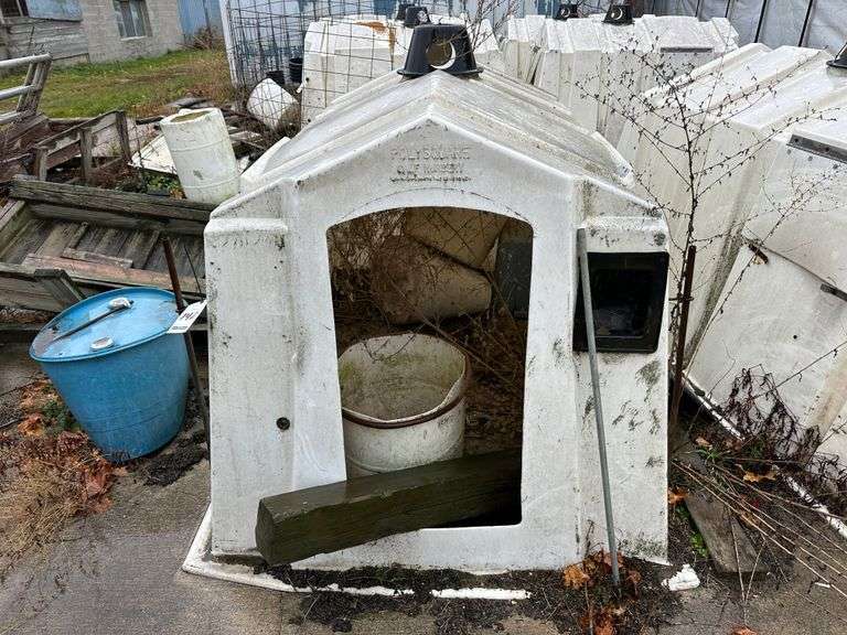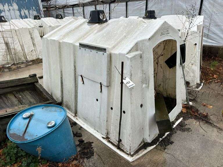Poly Square Calf Hutch, No Cattle Panel. NOTE: Calf Hutches are Individually Numbered and Pictured. You are Bidding on the One Pictured. Some Hutches May Show Varying Degrees of Wear - if you are Concerned About the Wear, Please Come to the Preview or Call the Owner.