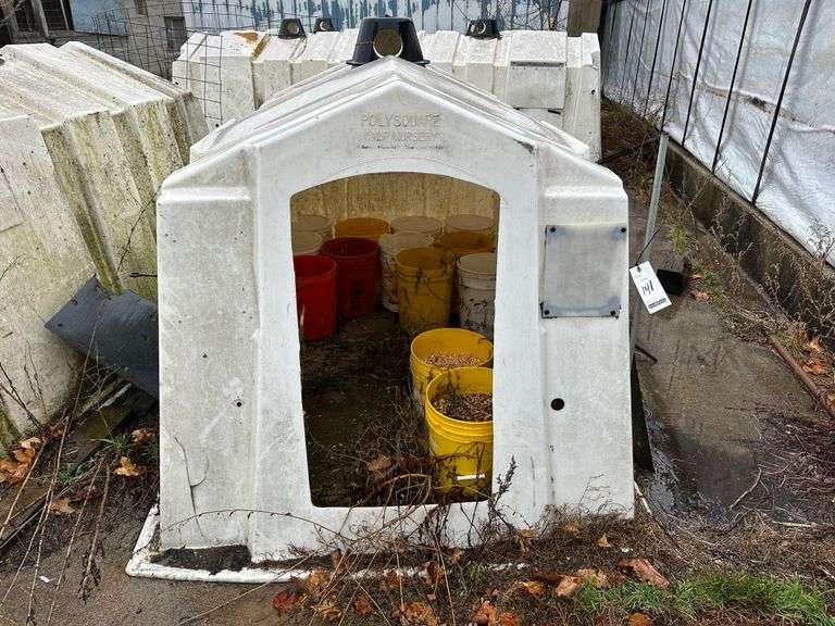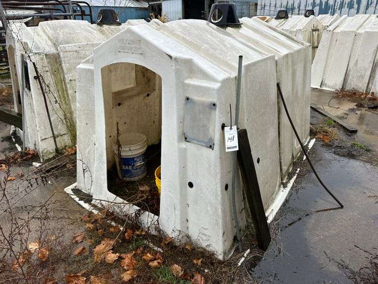 Poly Square Calf Hutch, No Cattle Panel. NOTE: Calf Hutches are Individually Numbered and Pictured. You are Bidding on the One Pictured. Some Hutches May Show Varying Degrees of Wear - if you are Concerned About the Wear, Please Come to the Preview or Call the Owner.