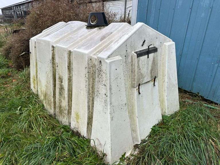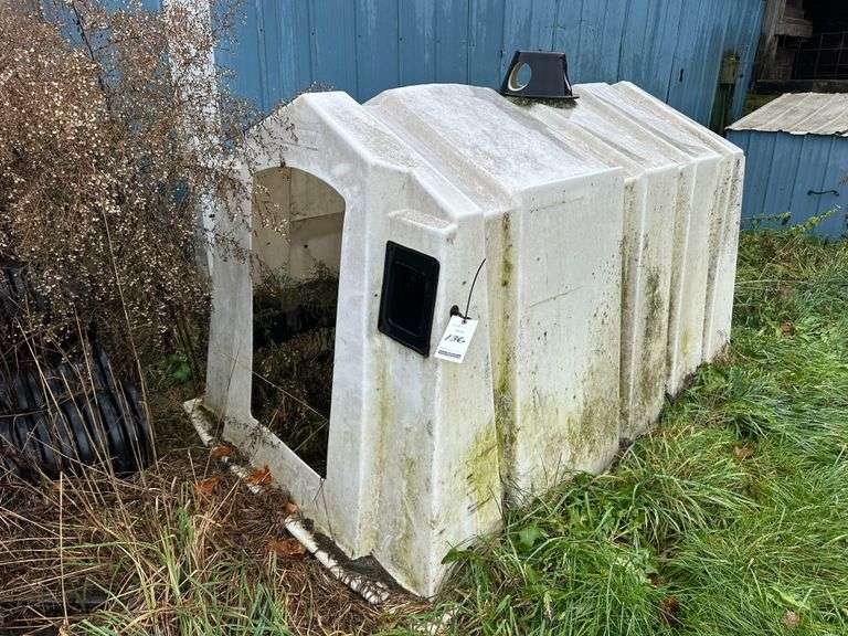 Poly Square Calf Hutch, No Cattle Panel. NOTE: Calf Hutches are Individually Numbered and Pictured. You are Bidding on the One Pictured. Some Hutches May Show Varying Degrees of Wear - if you are Concerned About the Wear, Please Come to the Preview or Call the Owner.