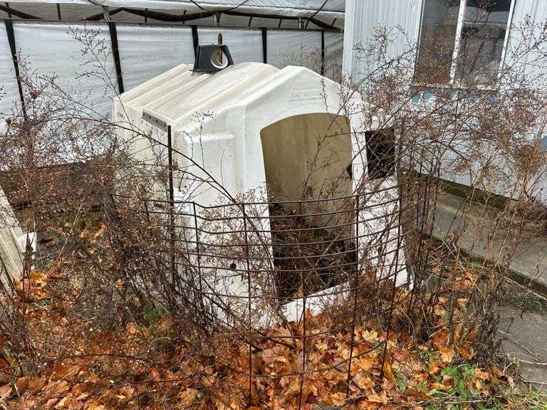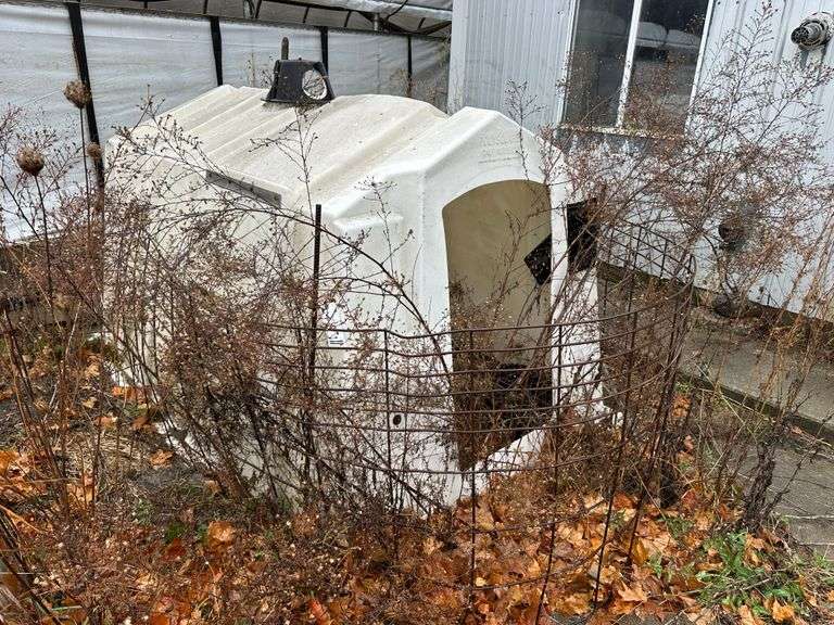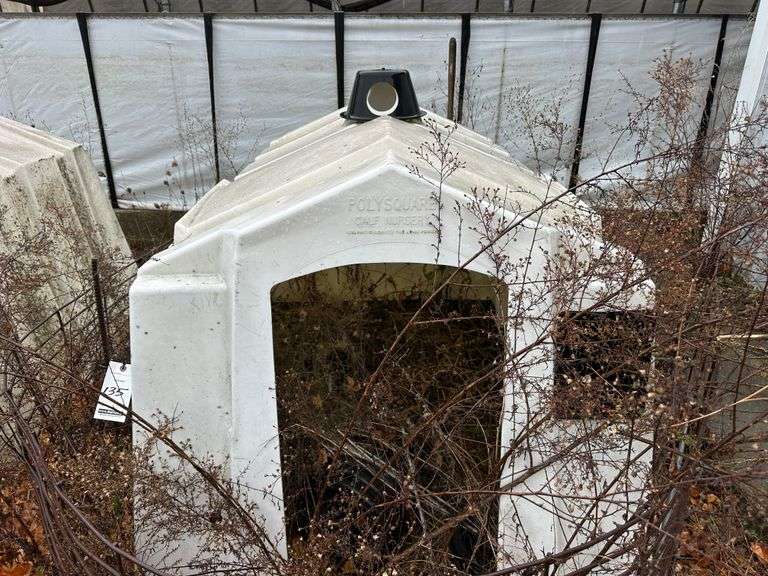 Poly Square Calf Hutch with Cattle Panel. NOTE: Calf Hutches are Individually Numbered and Pictured. You are Bidding on the One Pictured. Some Hutches May Show Varying Degrees of Wear - if you are Concerned About the Wear, Please Come to the Preview or Call the Owner.