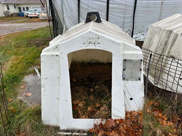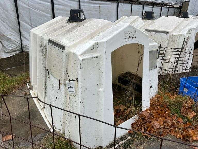 Poly Square Calf Hutch with Cattle Panel. NOTE: Calf Hutches are Individually Numbered and Pictured. You are Bidding on the One Pictured. Some Hutches May Show Varying Degrees of Wear - if you are Concerned About the Wear, Please Come to the Preview or Call the Owner.