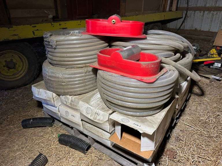 (16)-New In Box Kane Mfg. Waterers with Poly Vinyl Tubing (1" x 100' Coils - five are full)