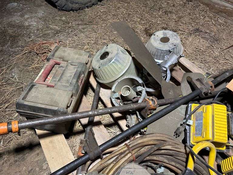 Pallet of Miscellaneous Lights, Blower, Pipe Clamps, Etc.