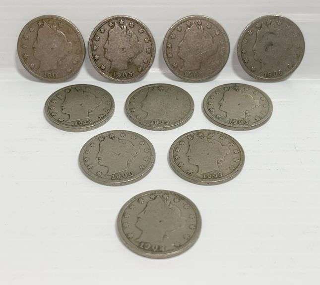 (10) Liberty V-nickels from 1900 to 1912, all different dates, nice coins