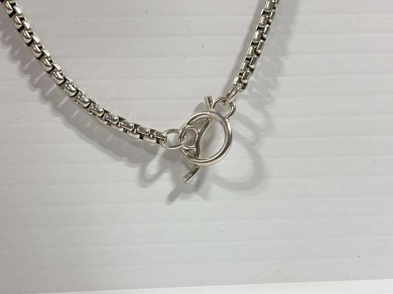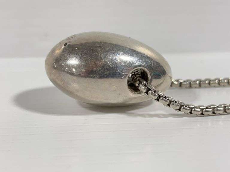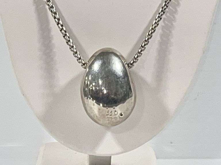 Heavy sterling silver egg necklace, 68g (2.4 oz.), 20"L, Except where specifically noted, jewelry lots have not been authenticated. Stone authenticity is not guaranteed by Albrecht Auction and should be personally determined by bidder prior to bidding. Jewelry with precious metal content will be listed as being marked or stamped. Jewelry that is not marked or stamped should not be assumed to contain precious metal content.