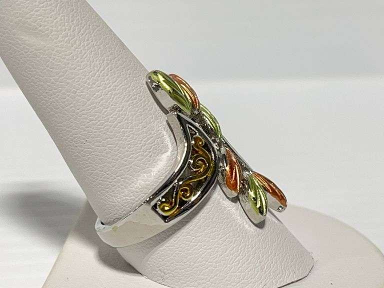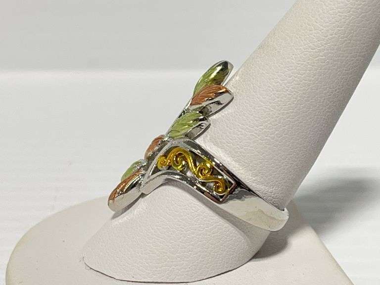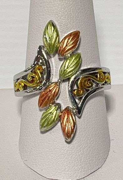Colorized ring, size 10; Except where specifically noted, jewelry lots have not been authenticated. Stone authenticity is not guaranteed by Albrecht Auction and should be personally determined by bidder prior to bidding. Jewelry with precious metal content will be listed as being marked or stamped. Jewelry that is not marked or stamped should not be assumed to contain precious metal content.