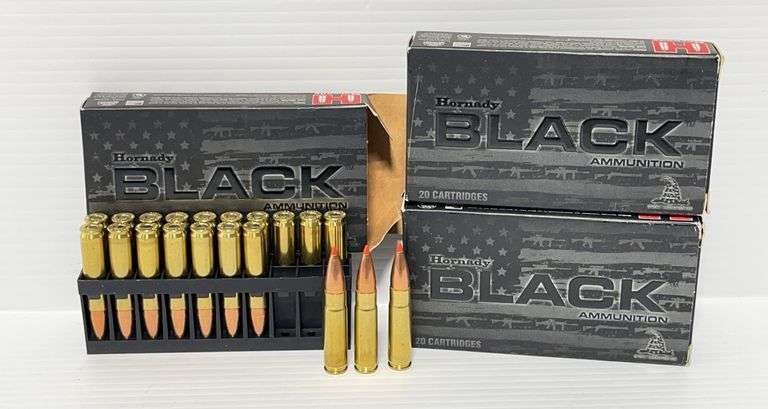 (60) Cartridge Hornady black ammo, 300 blackout 110-grain VMax