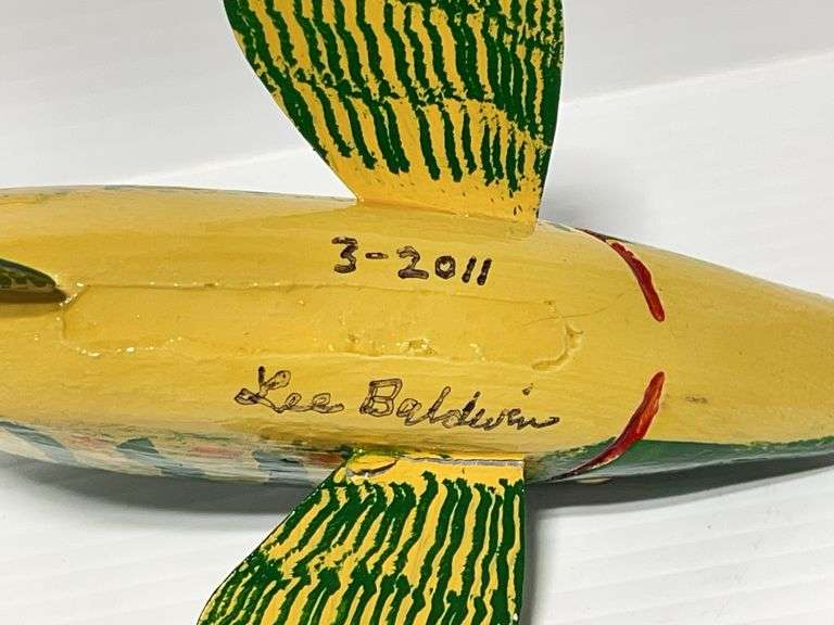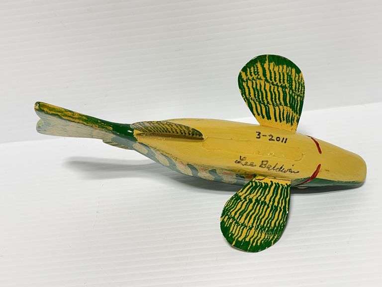 Fish decoy signed Lee Baldwin, dated, 8 1/4"L